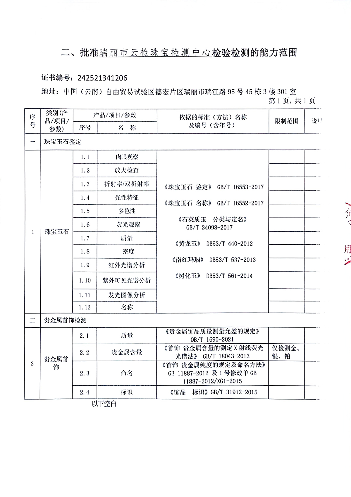 主要依据标准:GB/T 16552-2017《珠宝玉石 名称》、GB/T 16553-2017《珠宝玉石 鉴定》。
